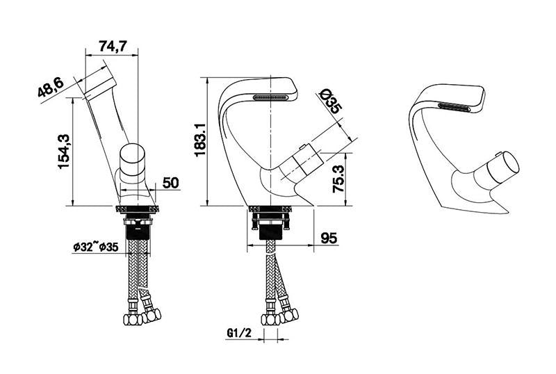 - Single hole deck mounted faucet.